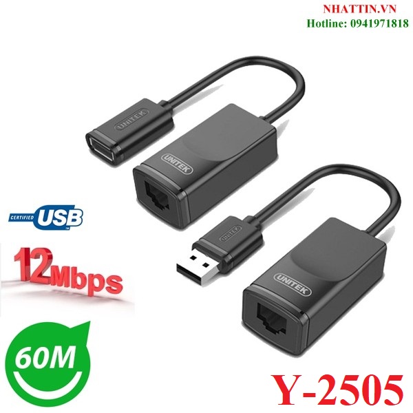 Bộ kéo dài USB 2.0 Extender 60M qua cáp Lan Cat5e/Cat6 đồng Unitek Y-2505 cao cấp (Ko nguồn)