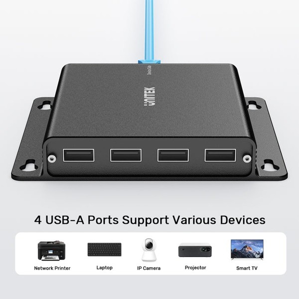Bộ kéo dài tín hiệu USB 1-4 qua cáp mạng Cat6 dài 150M chuẩn 2.0 Unitek U1222ABK01-EU cao cấp