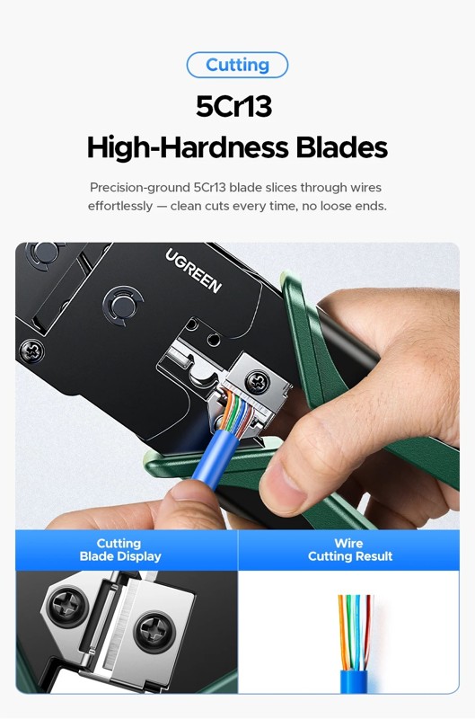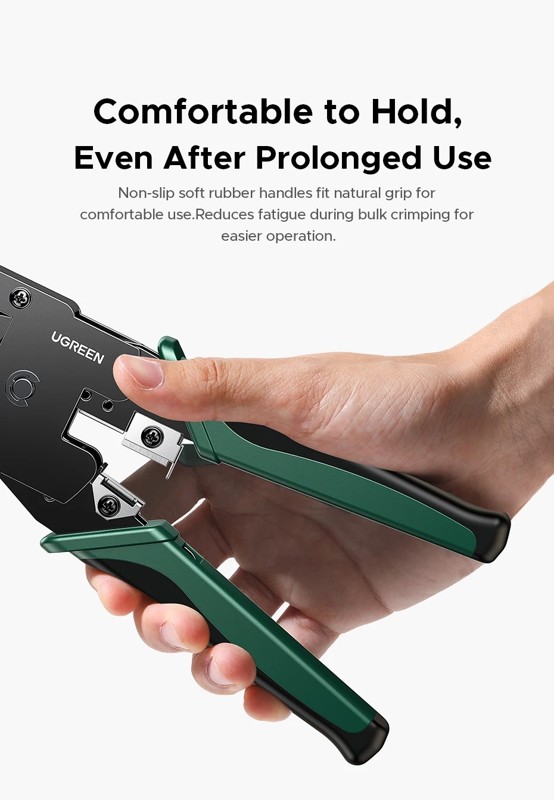 Kìm bấm mạng RJ45/RJ12/RJ11 Ugreen 35971 là dụng cụ đa năng dùng để bấm các chuẩn mạng RJ45 Cat5, Cat5e, Cat6 và RJ11 6 pin, một cách dễ dàng và thuận tiện nhất. Với lưỡi dao cứng chắc, những đường cắt sắc lẹm chuẩn xác là một thiết bị thiết yếu của các kỹ thuật viên.