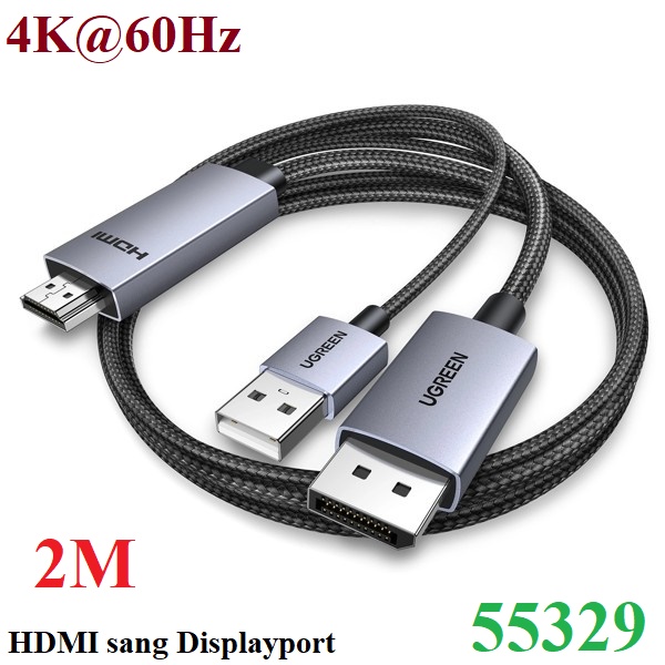 Thông số kỹ thuật: Cáp chuyển đổi HDMI sang DisplayPort Active dài 2M hỗ trợ 4K@60Hz 1080P@120Hz Ugreen 55329 cao cấp