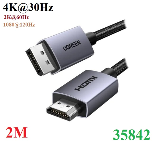 Thông số kỹ thuật: Cáp chuyển đổi Displayport to HDMI dài 2M hỗ trợ 4K30Hz Ugreen 35842 cao cấp
