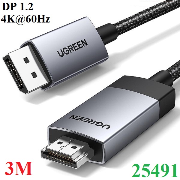 Cáp chuyển đổi Displayport to HDMI dài 3M hỗ trợ 4K60Hz, 2K144Hz, 1080p240Hz Ugreen 25491 cao cấp