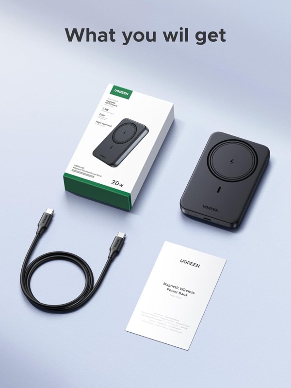Pin sạc dự phòng không dây 10000mAh PD20W Magsafe Qi 7,5W Ugreen 25919/PB561 cao cấp