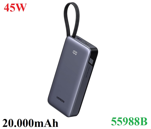 Sạc dự phòng PD 45W Nexode 20000mAh 3 cổng có cáp USB-C liền Ugreen 55988B cao cấp