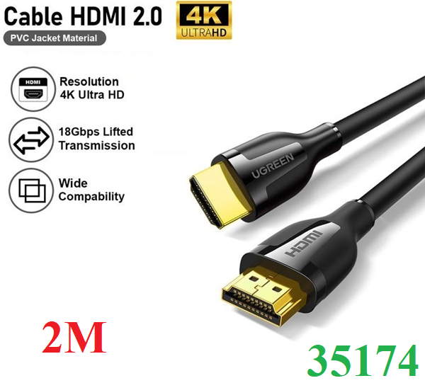 Cáp HDMI 2.0 cao cấp dài 2m Ugreen 35174 hỗ trợ các định dạng trình chiếu 4K, 3D với tỉ lệ màn hình 21:9 và 32 kênh audio, với băng thông truyền dẫn lên đến 18Gbps cho phép bạn kết nối TV, máy chiếu HD/4K với đầu Blue-Ray / DVD, Xbox, Play Station, PC và các thiết bị phát cổng HDMI khác.