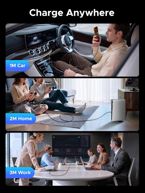Tương thích với mọi thiết bị: Cáp sạc USB C sang USB C 240W UGREEN này tương thích với iPhone 17/17 Pro/17 Pro Max, iPhone 16/16 Pro/16 Pro Max, MacBook Pro/Air, iPad Pro/Air, Pixel 10/9 Pro, Galaxy S25/S24/S23, Galaxy Tab S9, Surface Pro 9, Dell XPS, Switch, Steam Deck.