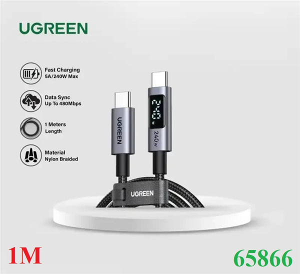 Thông số kỹ thuật: Cáp sạc, dữ liệu Type-C sang Type-C 240W/5A PD3.1 dài 1M có LED hiển thị thông minh Ugreen 65866 cao cấp