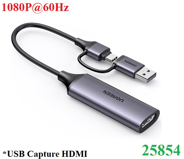 Thông số kỹ thuật: USB Capture HDMI, live streaming 1080P@60Hz HDMI to USB 2.0, Type-C Ugreen 25854/CM716 cao cấp